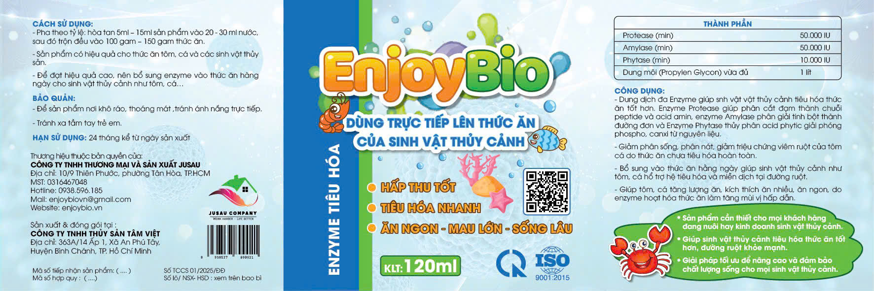 EnjoyBio là men tiêu hóa sinh học chuyên biệt dành cho các loài sinh vật thủy cảnh như cá, tôm, tép, cua… giúp hỗ trợ tiêu hóa, tăng sức đề kháng và duy trì môi trường nước trong lành – ổn định.